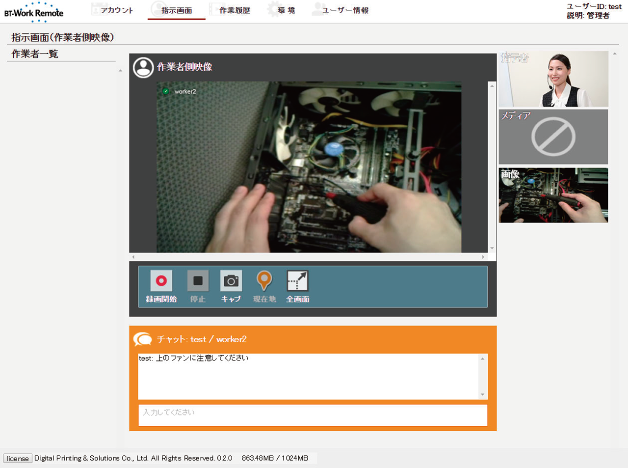 ウェアラブル遠隔指示・作業支援システムBT-Work Remoteは、ウェアラブル機器を利用した遠隔指示・作業支援システムです。