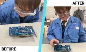 作業内容の習熟者からの指示をウェアラブル機器で受けることで、ハンズフリーになり、紙やPC、スマホ媒体を手にしながらの作業と違い手が止まる事がありません。